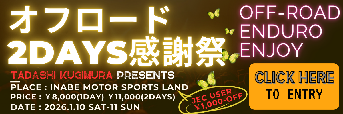 2017年4月26日 / 最終更新日時 : 2017年4月26日 ウブカタジャパン JEC BLOG 全日本エンデューロ選手権第1戦 広島大会もうすぐ~! こんにちは。 ブログ担当のウブカタジャパンです。 各レースが、すでに開幕しておりますが、 いよいよエンデューロの全日本も開幕戦が近づいてきましたねー。 長いお休みの方は、今週末からのゴールデンウィーク突入で、 あっという […] 共有: Facebook で共有するにはクリックしてください (新しいウィンドウで開きます) Facebook クリックして Pinterest で共有 (新しいウィンドウで開きます) Pinterest クリックして友達にメールでリンクを送信 (新しいウィンドウで開きます) メールアドレス クリックして印刷 (新しいウィンドウで開きます) 印刷 クリックして X で共有 (新しいウィンドウで開きます) X
